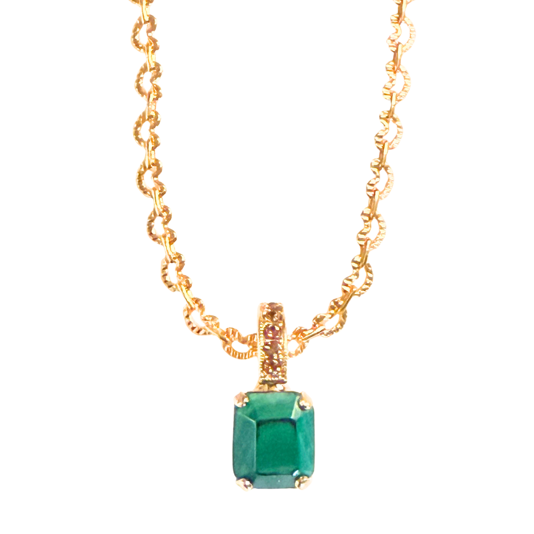 Hello, Miss May birthday! This cute pendant features a medium sized emerald shaped crystal and an embellished bale for a little extra sparkle!.