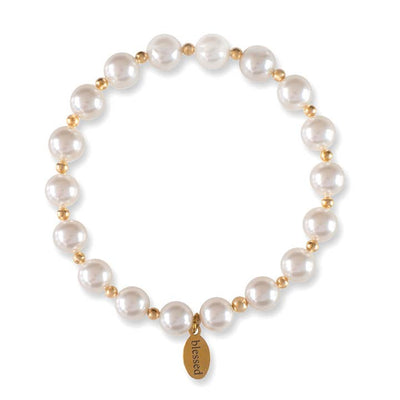 Count Your Blessings Bracelet 8MM White Pearls/Gold Beads